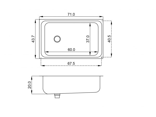 Largo: 71 cm Ancho: 37 cm Profundidad: 20 cm
