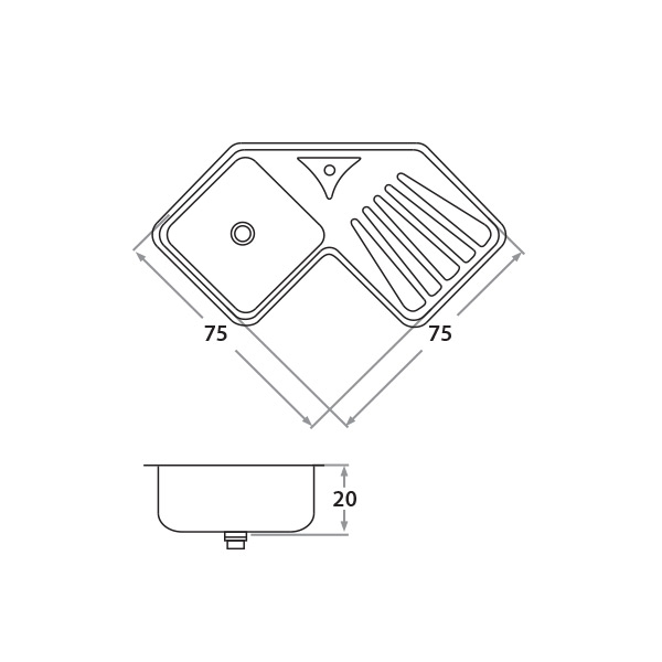 Largo: 75 cm Ancho: 75 cm Profundidad: 20 cm