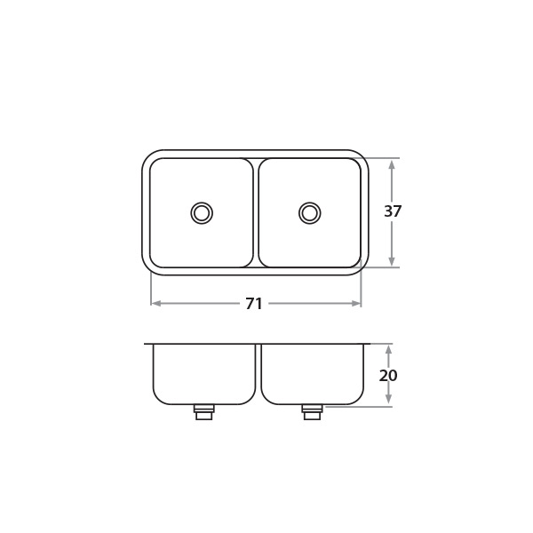 Largo: 71 cm Ancho: 37 cm Profundidad: 20 cm