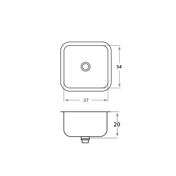 Largo: 37 cm Ancho: 34 cm Profundidad: 20 cm