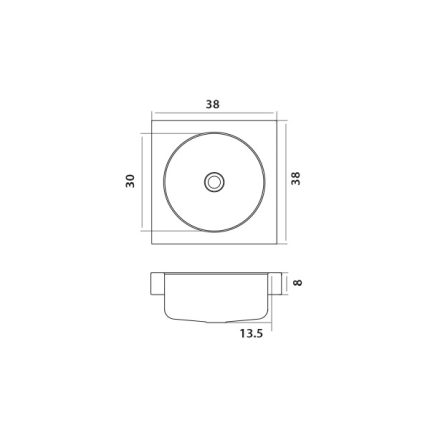 Interna: Ø 30 cm Externa: 38 cm Profundidad: 8 cm